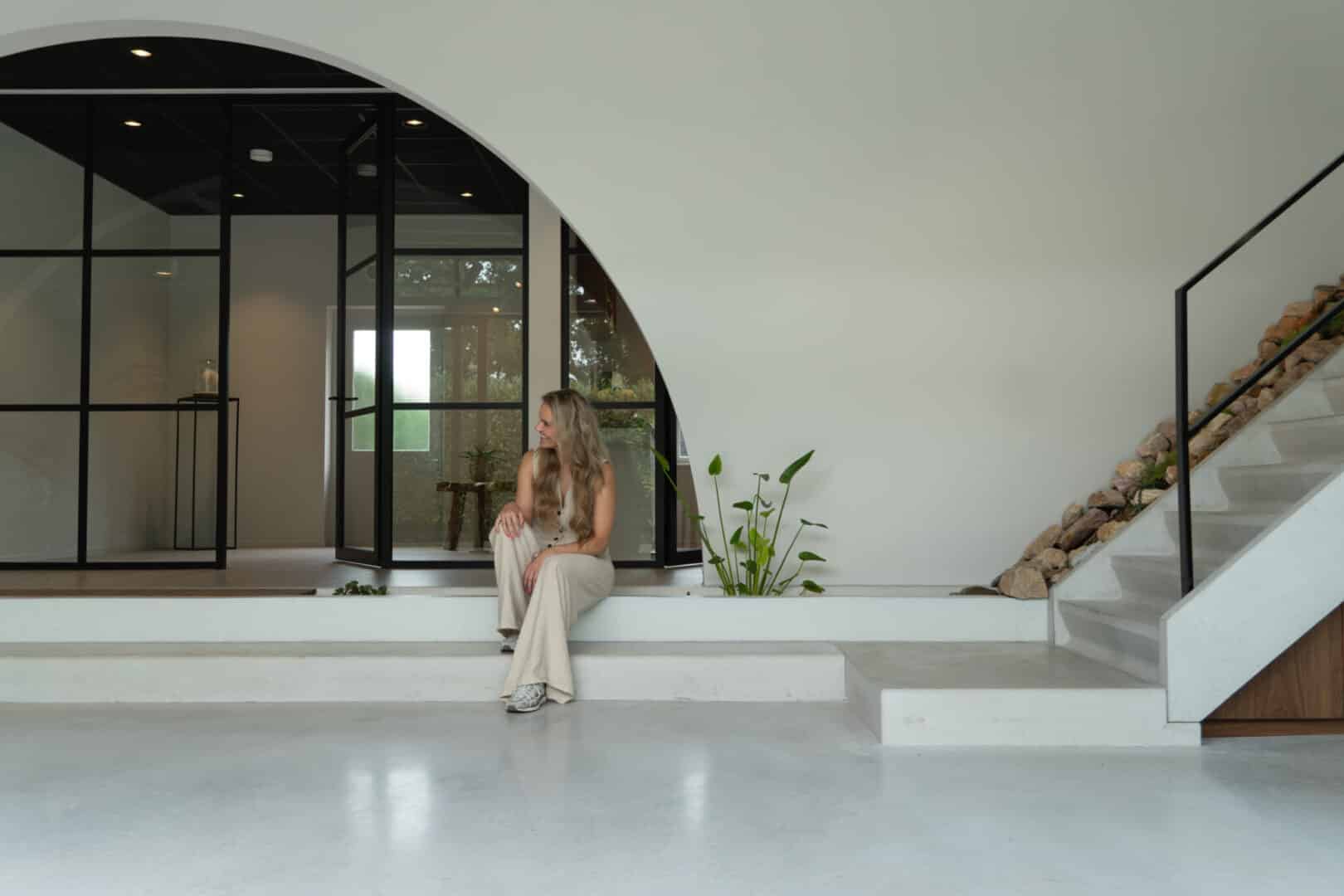 elk met hun eigen expertise. Huidcoaches, een orthomoleculair therapeut, een yogadocent, een strateeg en een creatieveling. ‘Iedereen is hier met een reden. We vullen elkaar aan. Mijn rechterhand Brechtje is echt mijn klankbord. Zonder haar had ik dit niet gekund. Zij heeft het concept mee vormgegeven, samen met Sofie uit Amsterdam die de branding naar een next level bracht. Ook ben ik mijn architect Anthony dankbaar dat hij mijn droomwereld tot leven heeft laten komen!’ Brechtje stelde me, voordat we dit traject startten, de vraag: wat als geld en familie en vrienden oneindig zijn? Alles kan en alles mag, wat zou je dan willen? Ik heb daar goed over nagedacht. Ik wil graag mensen verbinden, mijn kennis over de huid overdragen, ik houd van koken en de natuur, van yoga, van mooie rituelen en reizen en toen ik al die haakjes in elkaar klikte, zag ik het ineens voor me! Verbinden onder één dak. Geweldig! Sommige mensen zeggen: