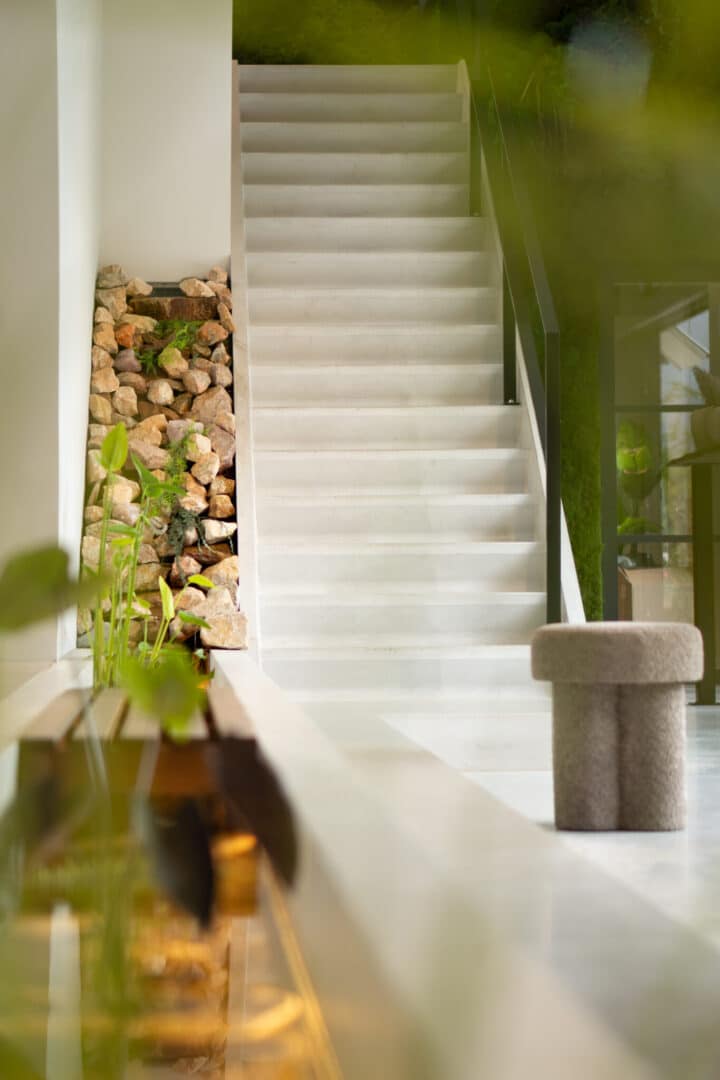 De locatie zelf draagt daar sterk aan bij. Het erf is volledig verbouwd tot een oase van rust. Er is een levende moswand, een waterval, veel houten accenten en een boom midden in de ruimte. ‘Alle elementen uit de natuur komen hier terug. Je ruikt de natuur zelfs. Je voelt dat je ergens anders bent. Zonder oordeel. Alles mag er zijn.’ Ondernemer Anouschka wil echt een thuisgevoel creëren voor mensen, waarin onzekerheid of ‘fear of missing out’-gedachtes geen rol spelen. Die aanpak trekt mensen van ver: klanten rijden vier uur uit België voor een afspraak. Sommigen begonnen ooit met online huidcoaching en reizen nu jaarlijks af voor een fysieke behandeling. ‘Ze willen de kwaliteit én de ervaring. Een cappuccino, een massage bij een peeling, de persoonlijke aandacht; dat is net zo belangrijk als het resultaat.’