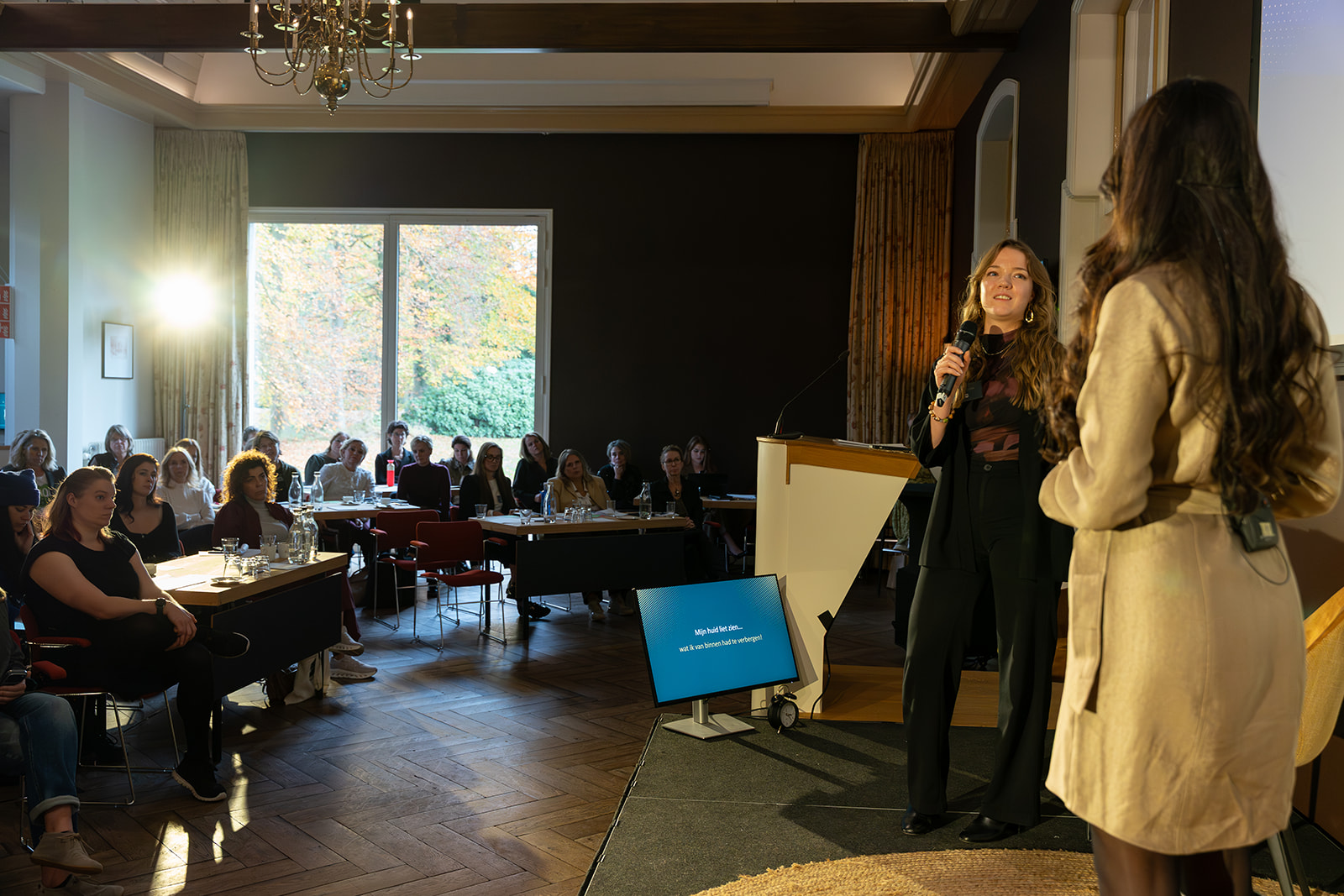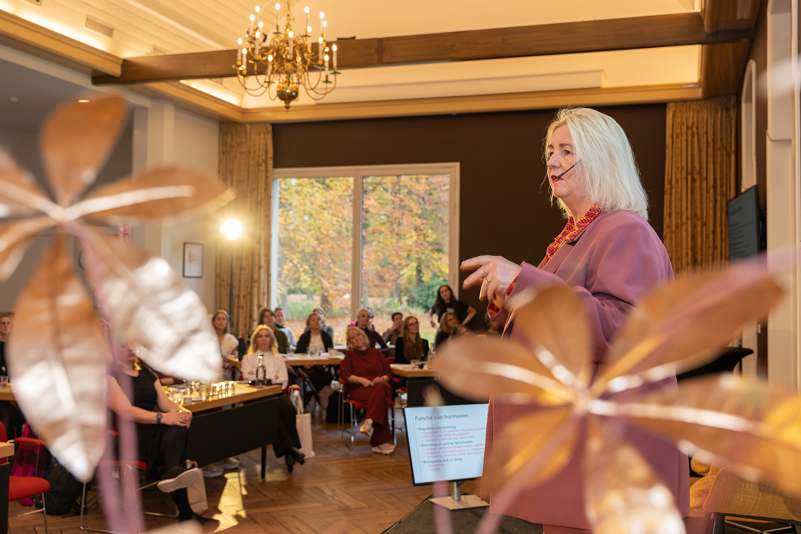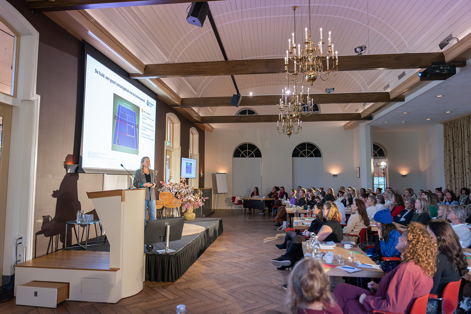 De dag begon met een sessie over de invloed van vrouwelijke hormonen op de huid. Gynaecoloog Barbara Havenith nam de aanwezigen mee door de hormonale veranderingen van puberteit tot overgang en de gevolgen hiervan voor de huid. Diëtist Aileen Vogel bouwde daarop voort met praktische inzichten over voeding bij onder meer PCOS, endometriose en overgangsklachten.