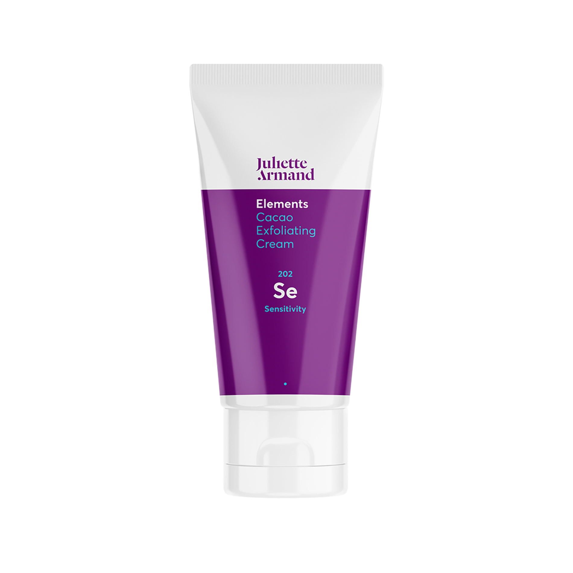 De Cacao Exfoliating Cream van Juliette Armand is een mechanische peeling met cacaoen amandelgranulen die voor een gelijkmatige exfoliatie zorgen. De fijne scrubkorrels verwijderen dode huidcellen op een milde wijze zonder de huid te irriteren. De toegevoegde Cacao Exfoliator bevat theobromine dat naast de peelende werking ook de huid revitaliseert. Het opnamevermogen wordt bevorderd, waardoor de huid optimaal kan profiteren van de werkstoffen die daarna worden aangebracht. De samenstelling bevat ook Marine Elastin; een elastine-extract met hygroscopische eigenschappen en aminozuren dat de elasticiteit en huidstructuur ondersteunt. Dankzij de kalmerende, hydraterende en herstellende werking van Panthenol zorgt deze peeling in crèmevorm voor een egale teint voor zelfs de meest gevoelige huidcondities. Daar kan iedere specialist in huidverbetering “chocola” van maken!